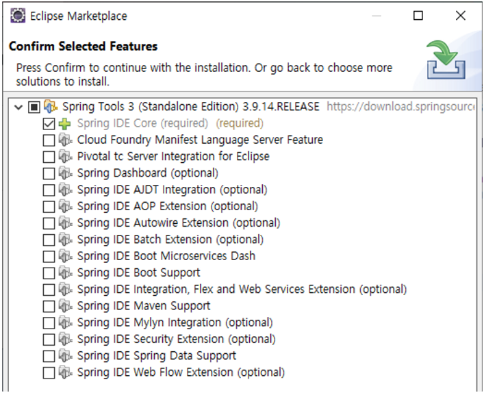 Spring Tools 3 설치 2. Spring IDE Core 체크